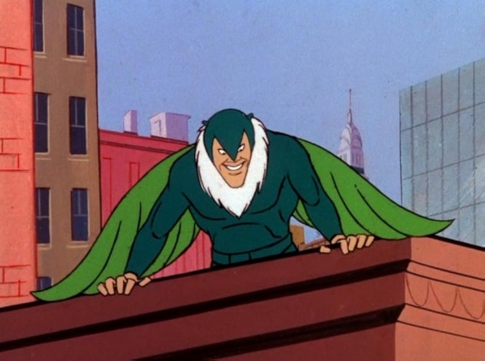 The Vulture uses a sonic device in his head mask to control an army of vultures. After the Vulture beats Spider-Man, he holds the city for a $2,000,000 ransom and J. Jonah Jameson blames Spider-Man. Spider-Man takes the ransom to the Vulture and uses this opportunity to sabotage the Vulture's device so the vultures attack him, then returns the ransom.