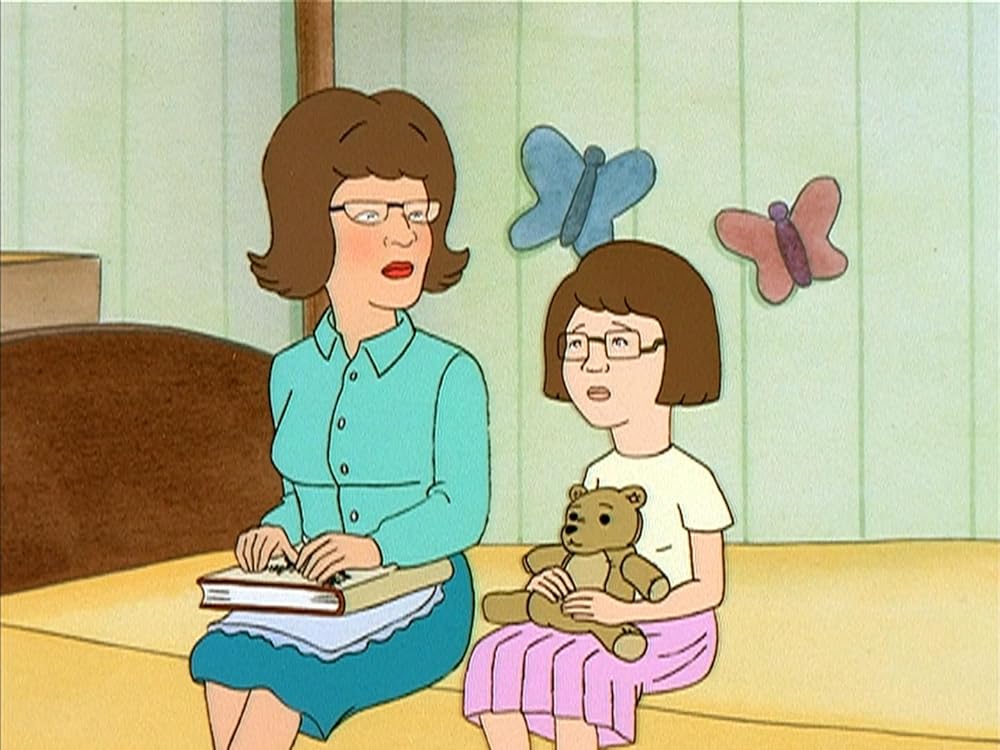 Peggy is mortified and tongue-tied when she finds out she has been chosen to teach the middle school's sexual education class, while Hank does everything he can to keep his son from learning about sex.